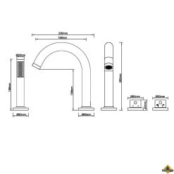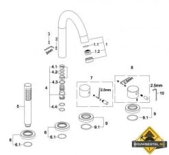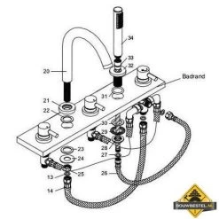 Wiesbaden Caral Inbouw Badrandkraan Afbouwset 4-gats Geborsteld Staal