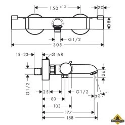 Wiesbaden Bib Inbouwdeel Thermostaatkraan Badrand 4-gats
