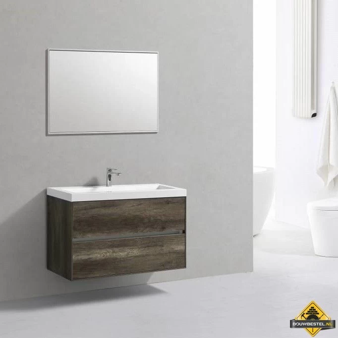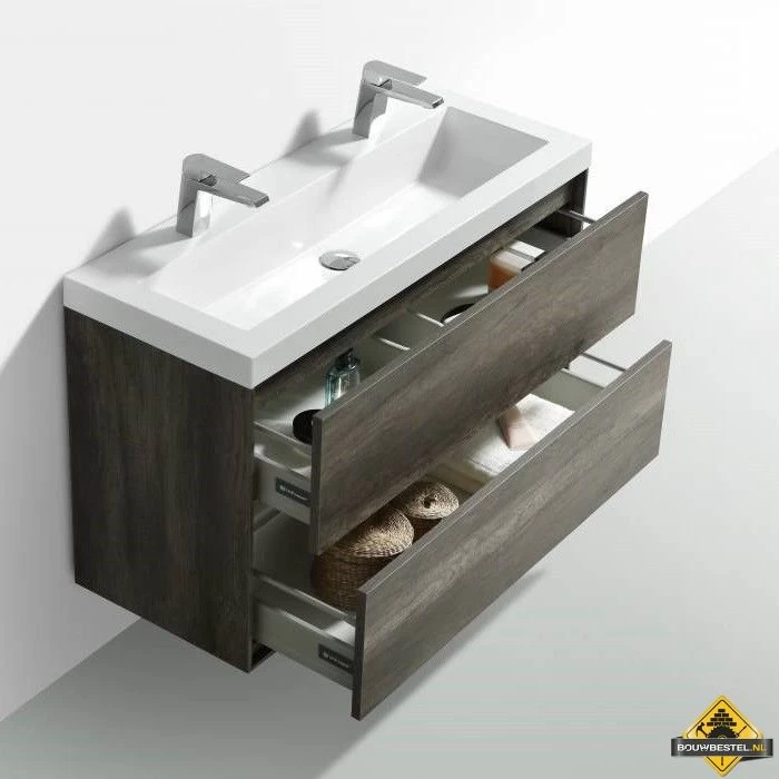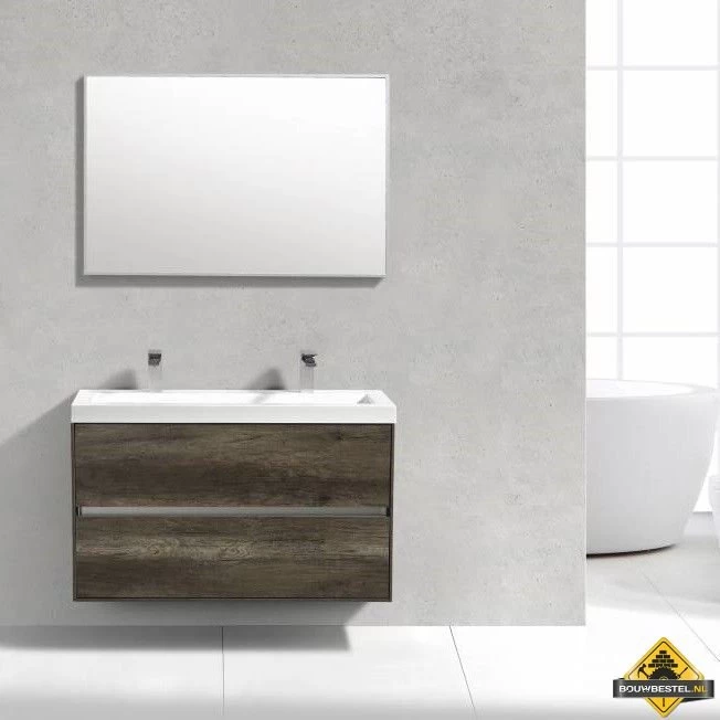 Deze complete badmeubelset bevat een onderkast met twee soft-close lades, een wastafel en een spiegel. De set heeft een afmeting van 100 x 38 x 56 centimeter. Bij dit badmeubel krijgt u bovendien een voor sanitair unieke 5 jaar productgarantie!