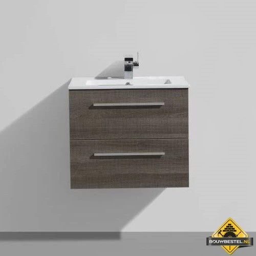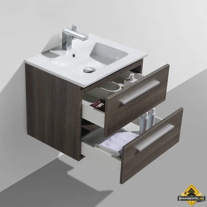 Deze voordelige badmeubelset bevat een onderkast met twee soft-close lades en een wastafel met kraangat. De set heeft een afmeting van 60 x 46 x 50 centimeter. Bij dit badmeubel krijgt u bovendien een voor sanitair unieke 5 jaar productgarantie!