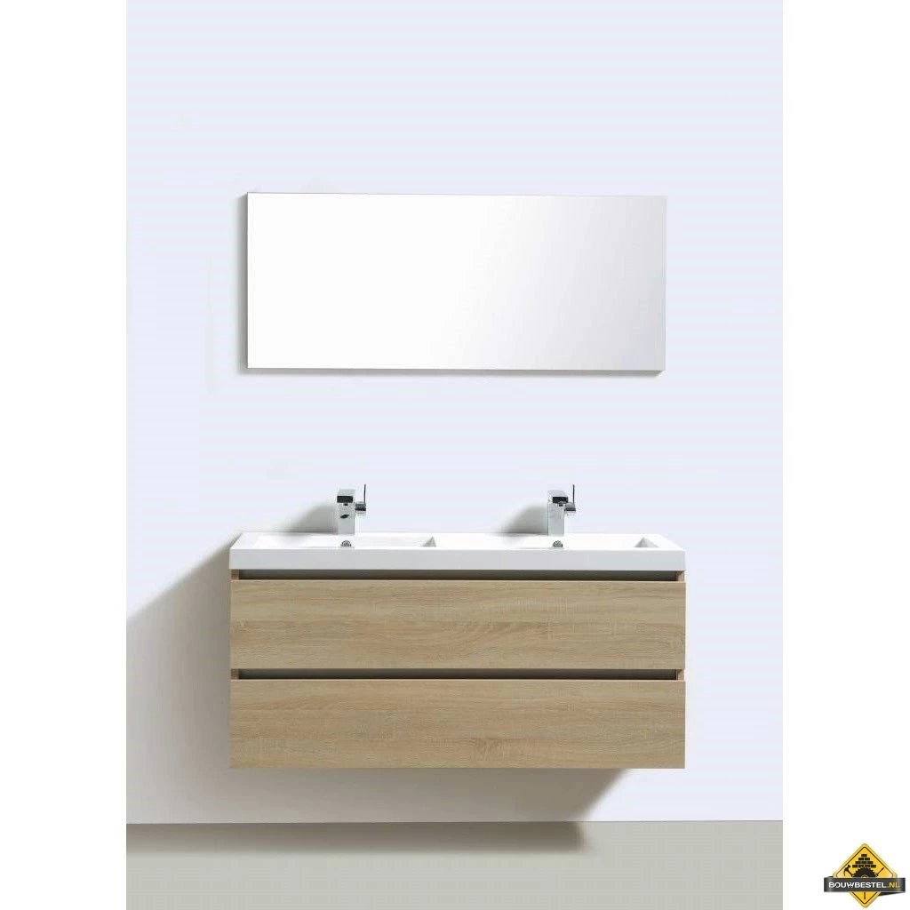 Deze complete badmeubelset bevat een onderkast met twee soft-close lades, wastafel zonder kraangat en een spiegel. De set heeft een afmeting van 120 x 47 x 50 centimeter. Bij dit badmeubel krijgt u bovendien een voor sanitair unieke 5 jaar productgarantie!