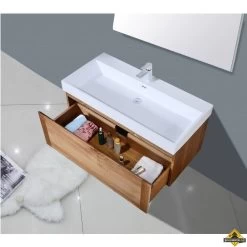 Deze complete badmeubelset bevat een onderkast met soft-close lade, wastafel en een spiegel. De set heeft een afmeting van 100 x 47 x 38 centimeter. Bij dit badmeubel krijgt u bovendien een voor sanitair unieke 5 jaar productgarantie!