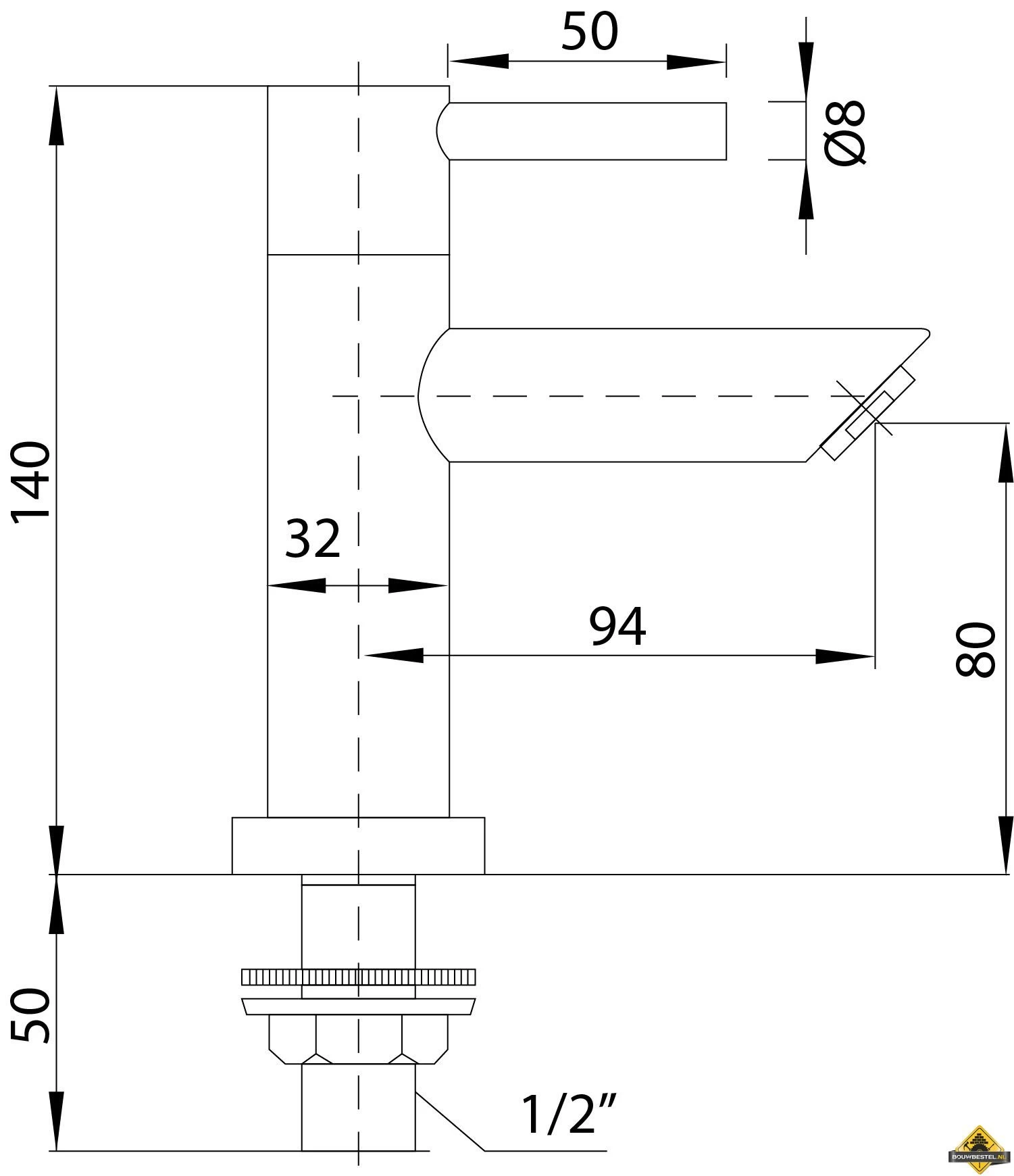 - Afmeting: 1/2″