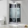 Deze douchecabine is kwartrond en heeft een afmeting van 90x90x190 cm. De cabine is direct op een tegelvloer te plaatsen, om daarna eventueel transparant af te kitten. Het glas is voorzien van een NANO antikalk coating. Deze zorgt ervoor dat er geen ongewenst vuil en kalk achterblijft op het glas. Het water loopt makkelijk van het glas af. Bovendien zorgt de coating voor een glanzende uitstraling. U bespaart hier mee veel tijd met schoonmaken. Let op, er mogen geen bijtende schoonmaakmiddelen gebruikt worden. Hierdoor kan de NANO coating beschadigen. Reinig het glas simpelweg met een vochtige doek.