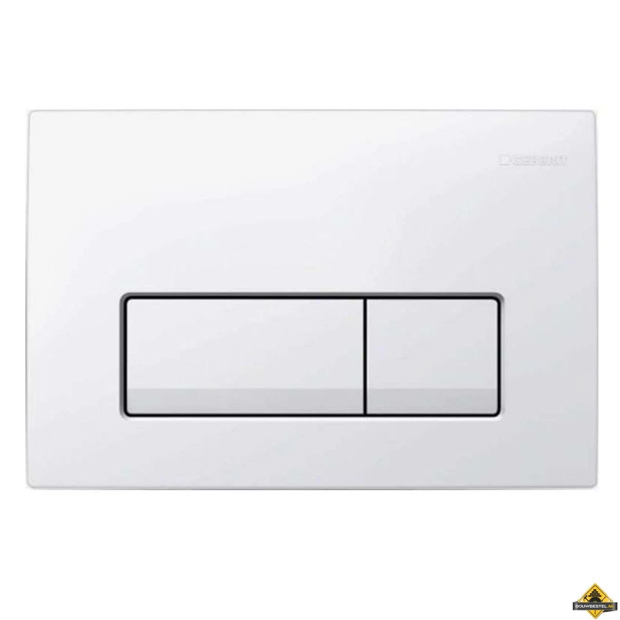 Witte drukplaat met 2 rechthoekige toetsen voor de grote en kleine spoeling. Geschikt voor de Geberit UP100.