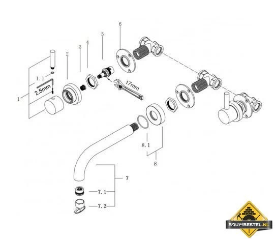 Deze inbouwset is gemaakt van messing en heeft een chroom kleur. De Caral inbouw wastafelkraan 2-knops chroom van de fabrikant van de fabrikant van Wiesbaden bestaat uit: