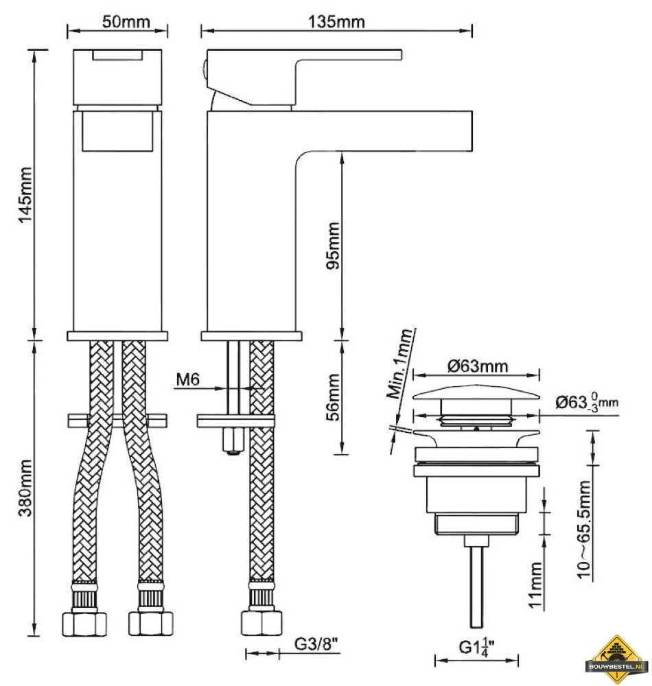 Opbouwhoogte totaal: 145 mm