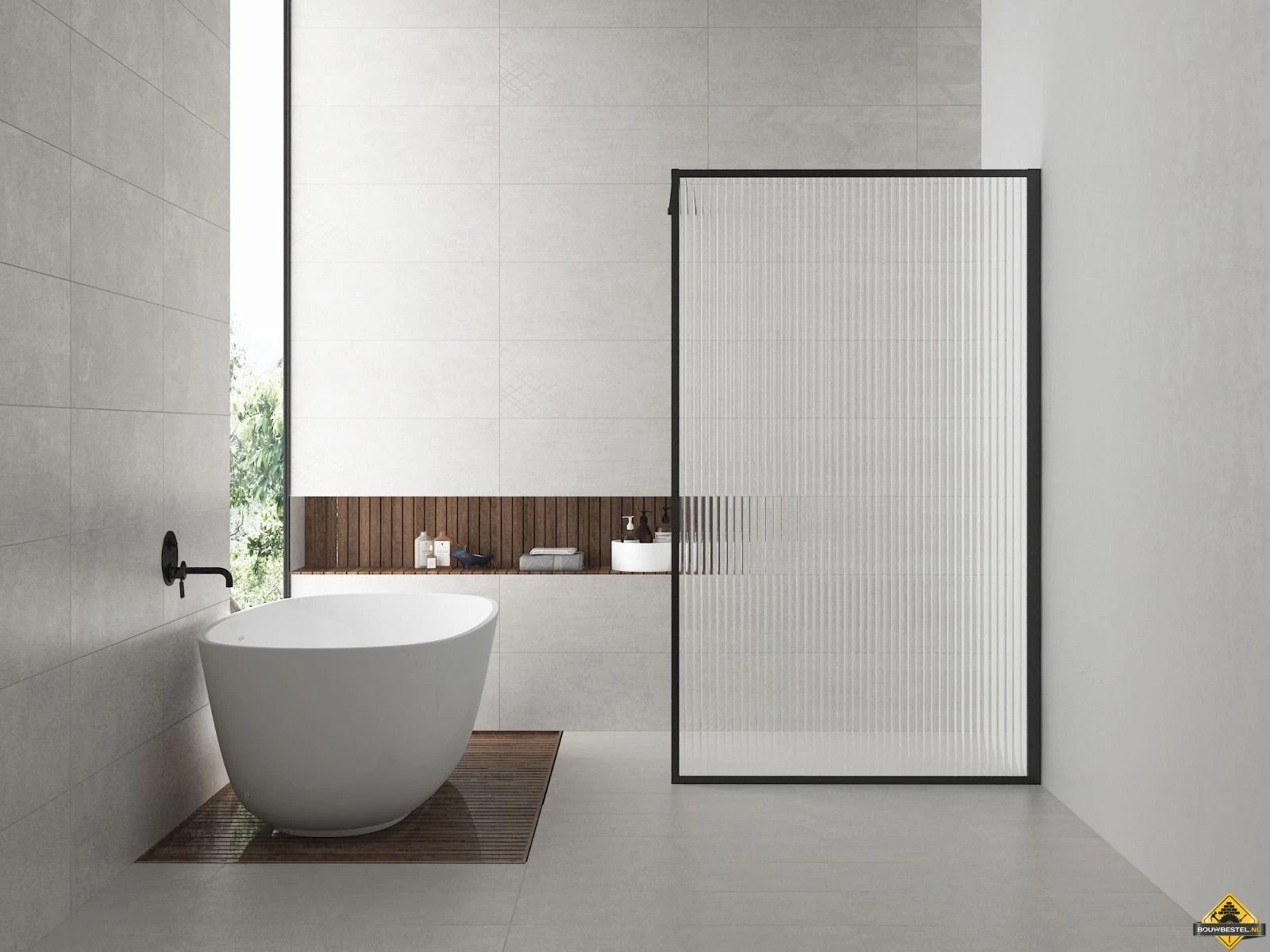 Square inloopdouche 1000×2000 8mm nano geribbeld helder glas/mat zwart