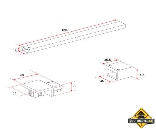 stabilisatiestang 120 compleet voor inloopdouche + raster zwart