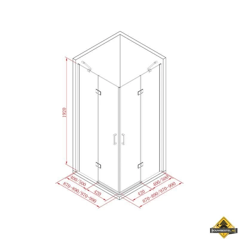 - Bij montage op een douchebak zijn de afmetingen 2 à 3 cm kleiner