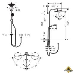 - Bij montage op een douchebak zijn de afmetingen 2 à 3 cm kleiner