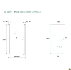 Inbouwbreedte deur voor montage in nis: 580I620 mm