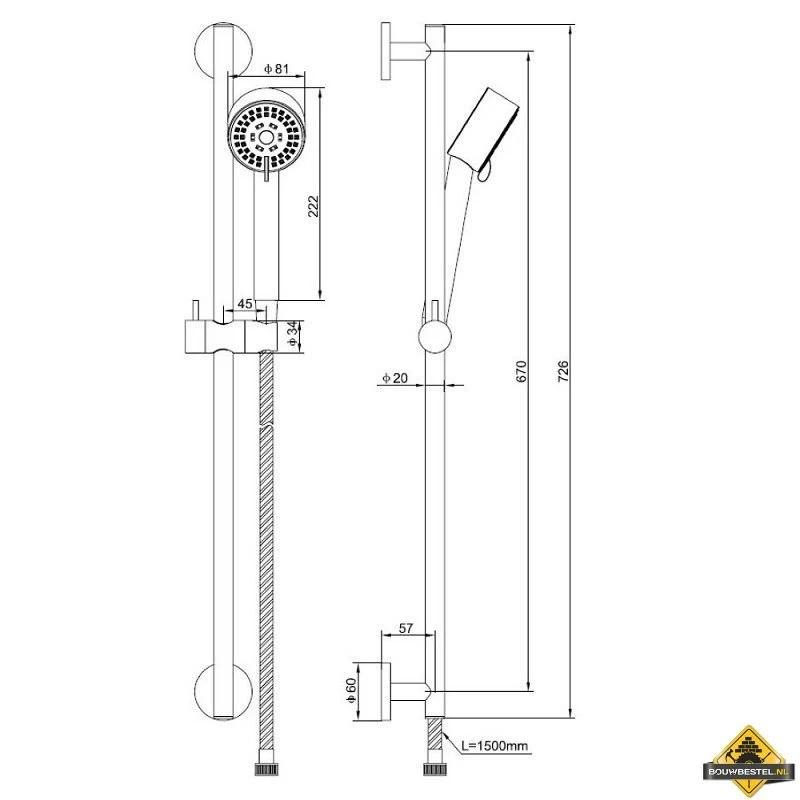 Lengte doucheslang: 1500 mm