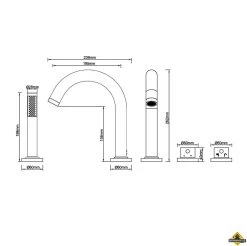 Wiesbaden Chroom Bodemplaat Inbouw Douchekraan 3 Knop 125×295
