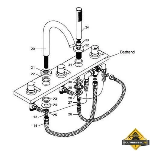 - 1 stuk omstelknop (keuze uitloop of handdouche)