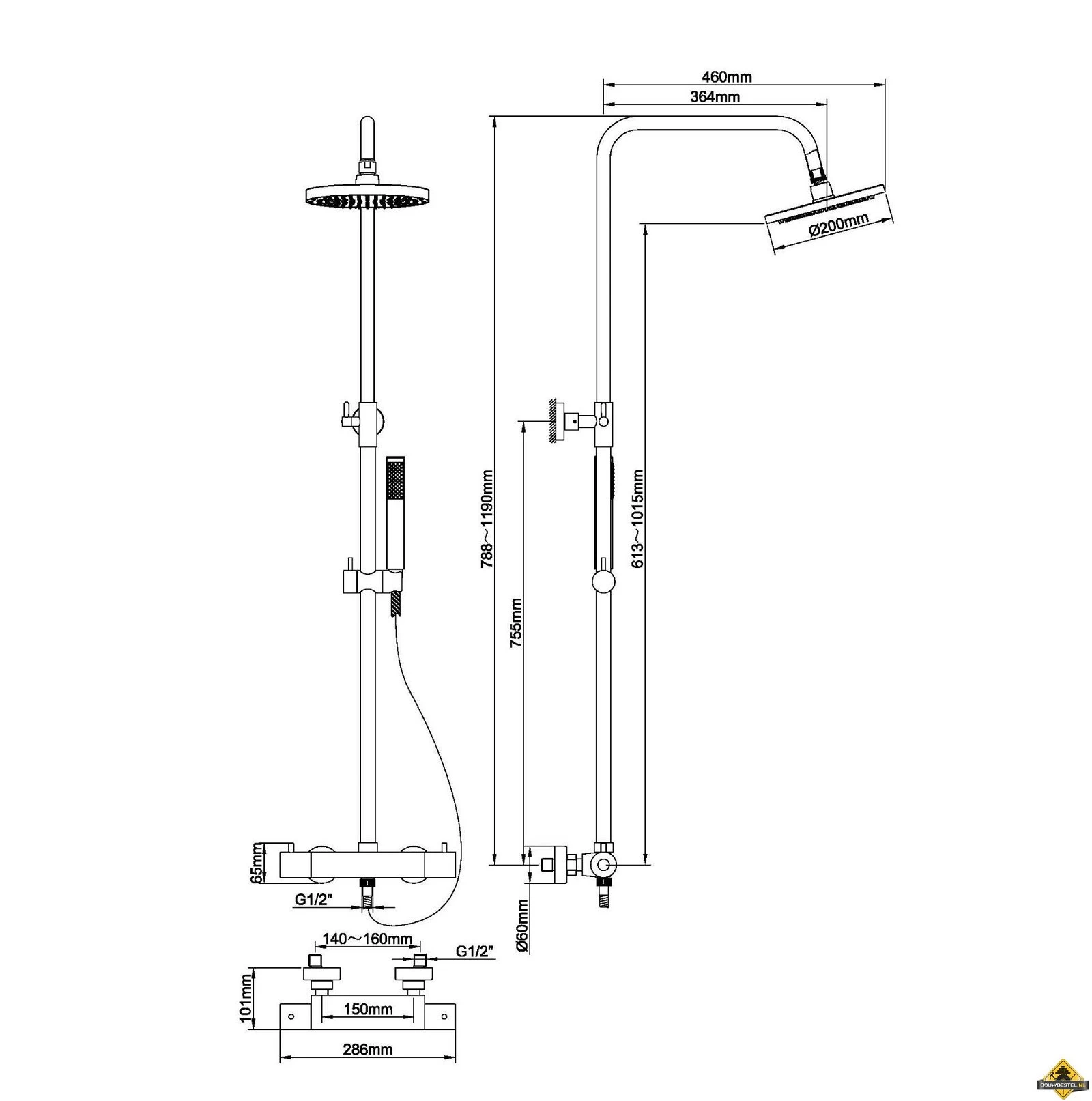 A-merk sanitair, zoals een Caral douche-opbouwset, nu bij Bouwbestel!