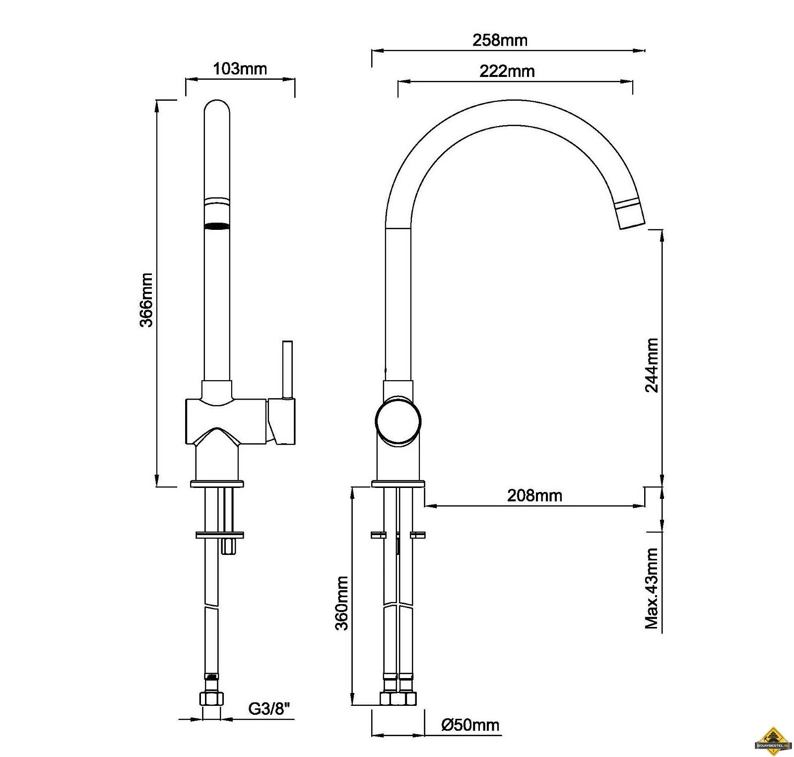 A-merk sanitair, zoals een Caral keukenmengkraan geborsteld staal, nu bij Bouwbestel!