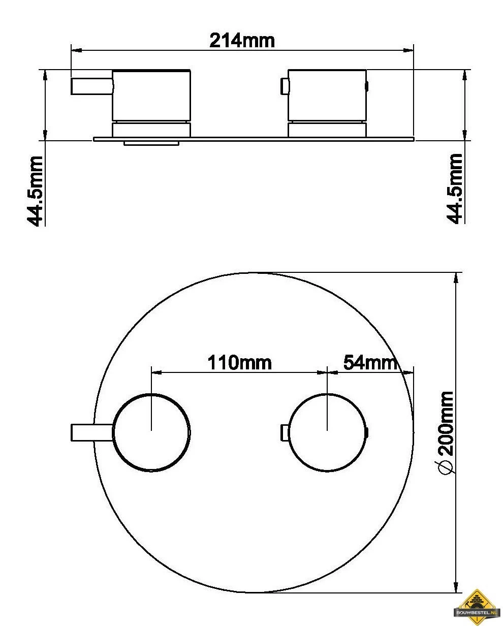 Afbouwdeel voor het inbouwdeel douchethermostaat 29.2500 (apart te bestellen), bestaande uit thermostaatknop, omstelknop(pen) en ronde bodemplaat van 20cm.