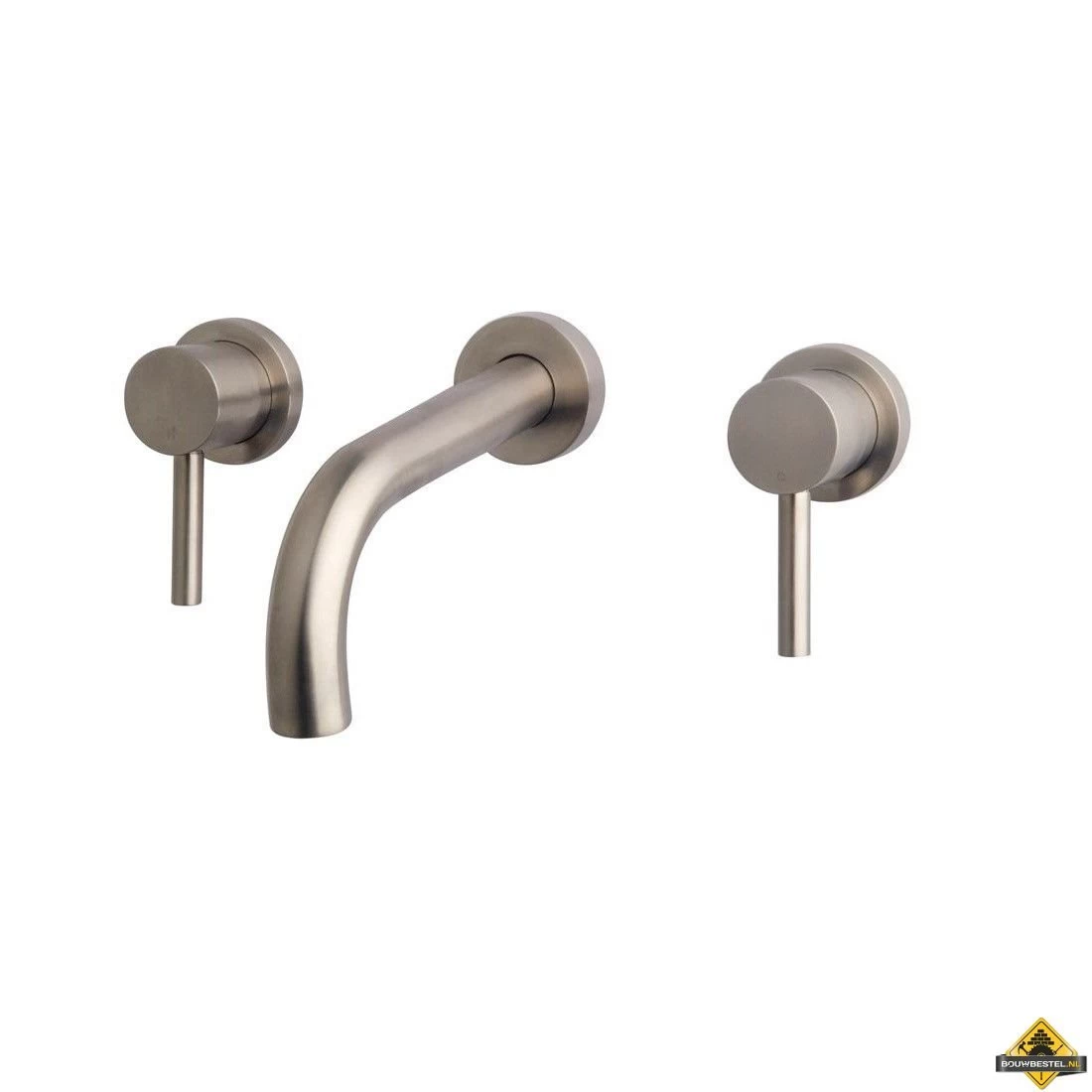 Deze afbouwset is gemaakt van messing en heeft een RVS kleur. De Caral inbouw wastafelkraan afbouwset 2-knops chroom van Wiesbaden bestaat uit: