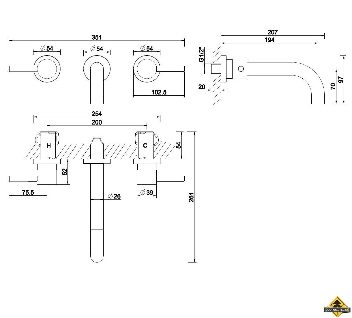 Let op! Voor deze Caral inbouw wastafelkraan afbouwset 2-knops heeft u een inbouwdeel nodig (zie verwante producten).