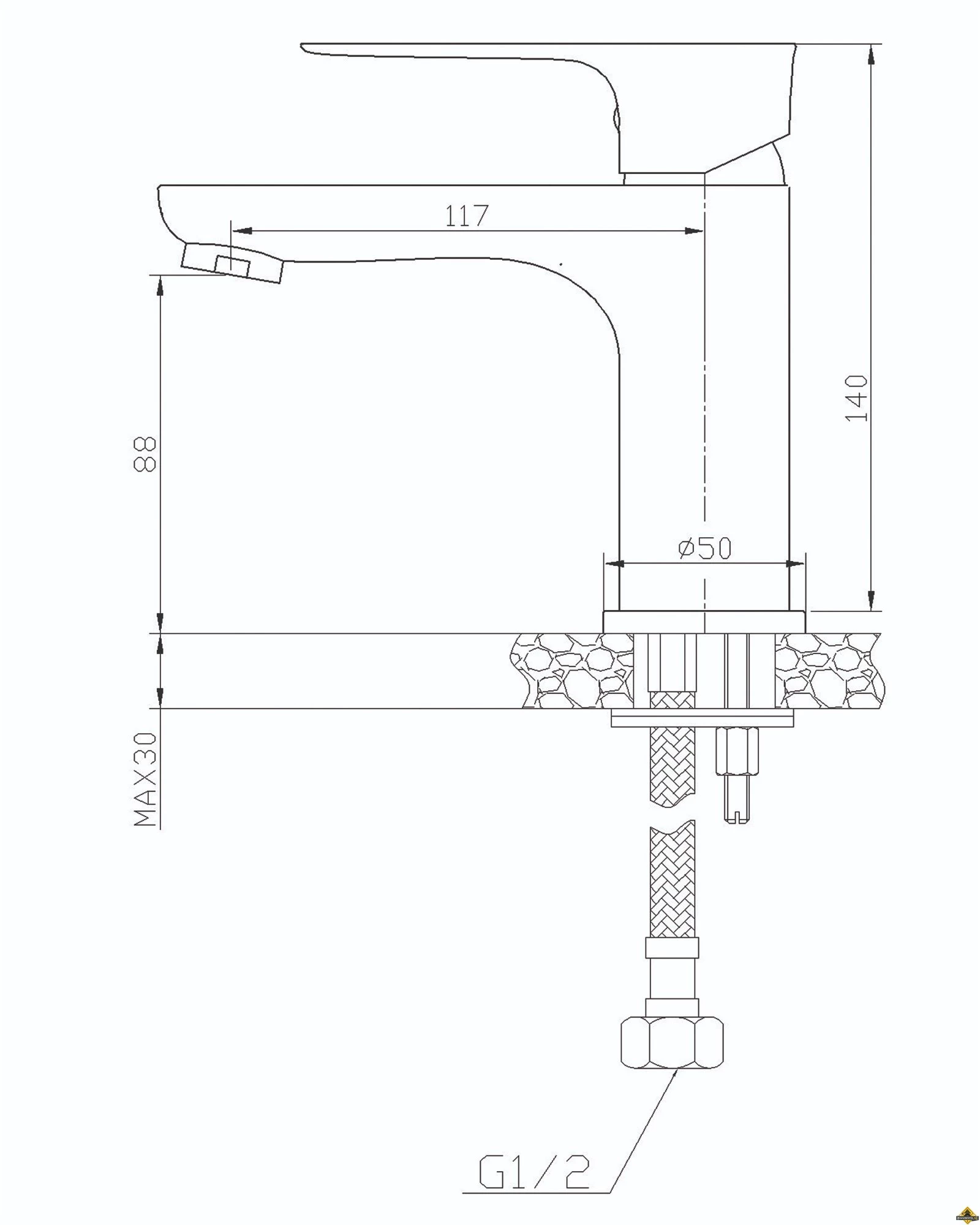 Opbouwhoogte onderkant kraanmondstuk: 88 mm