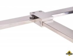 Met dit koppelstuk van Wiesbaden wordt het mogelijk om twee stabilisatiestangen haaks op elkaar te koppelen. Hierdoor is het mogelijk een wand haaks op een andere wand te plaatsen en deze aan elkaar te stabiliseren.