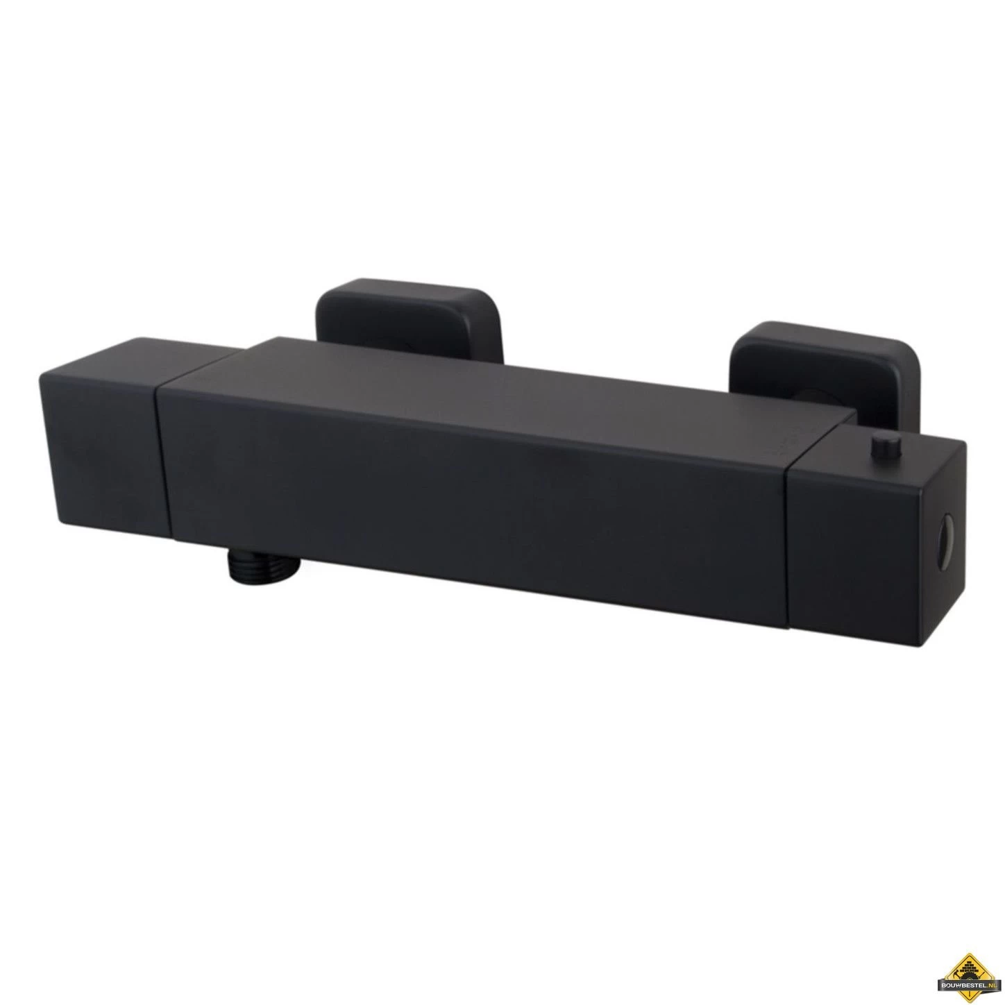 Eco Rombo thermostatische douchemengkraan mat-zwart. De keramische schijven in deze thermostaatkraan zorgen er verder voor dat de douchethermostaat een lange levensduur heeft. De douchethermostaat heeft een hart-op- hart van 15 centimeter. De mat zwarte coating op de douchethermostaat zorgt er voor een industriële look. We adviseren u wel om op te passen met gereedschap bij de montage van de mat zwarte kraan. Dit kan wat krasgevoelig zijn met metalen voorwerpen. De douchekraan heeft een een Cool-touch behuizing. De kraan is dus veiliger, omdat het bijvoorbeeld geen brandplekken meer met zich mee kan brengen.