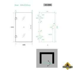Inbouwbreedte deur voor montage in nis: 808I808 mm