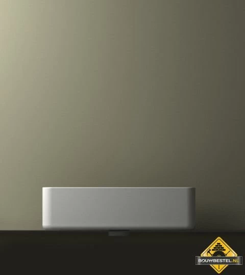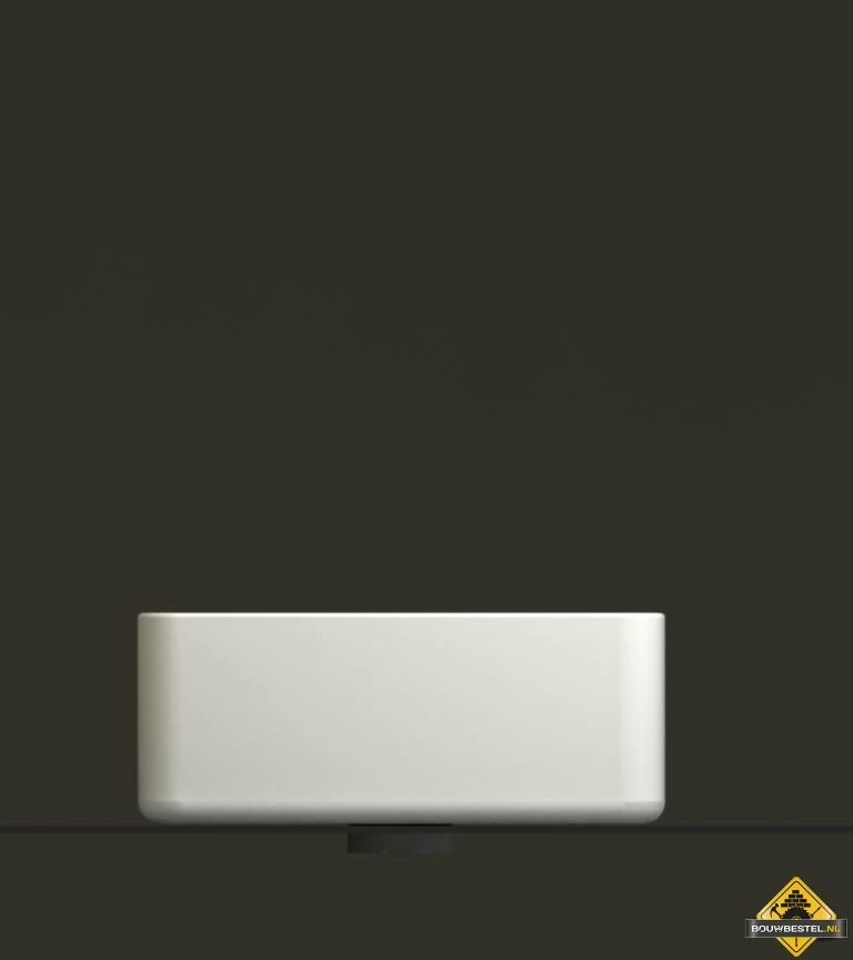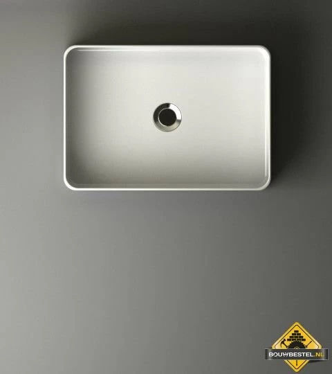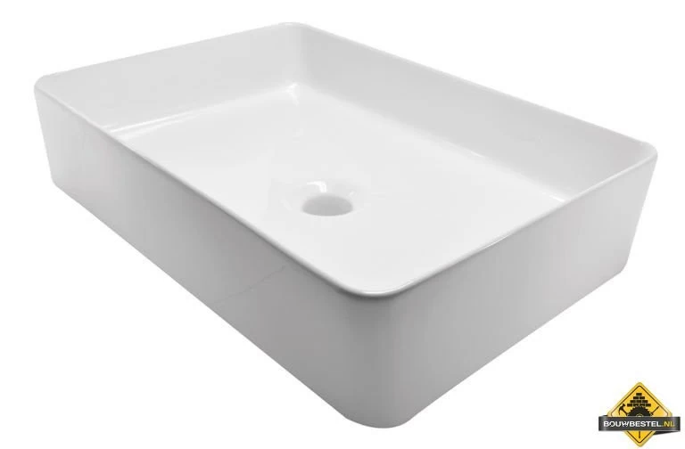 Een prachtige rechthoekige wastafel die op een zeer sierlijke manier zijn vormen weergeeft. Deze waskom is bedoeld voor een wastafelblad of een eigen gemaakt meubel.