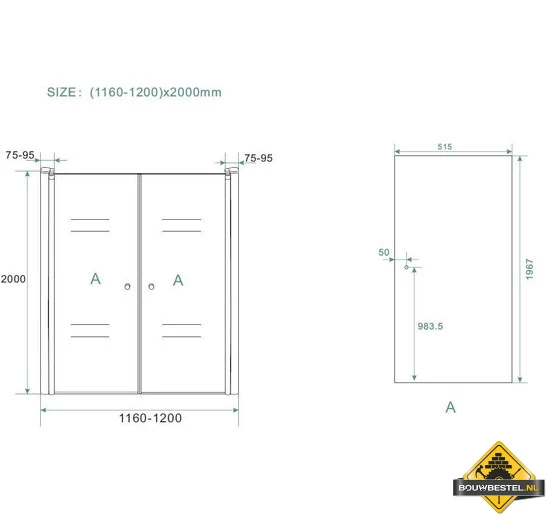 Inbouwbreedte deur voor montage in nis: 1180I1220 mm