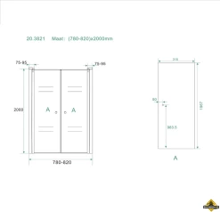 Inbouwbreedte deur voor montage in nis: 780I820 mm