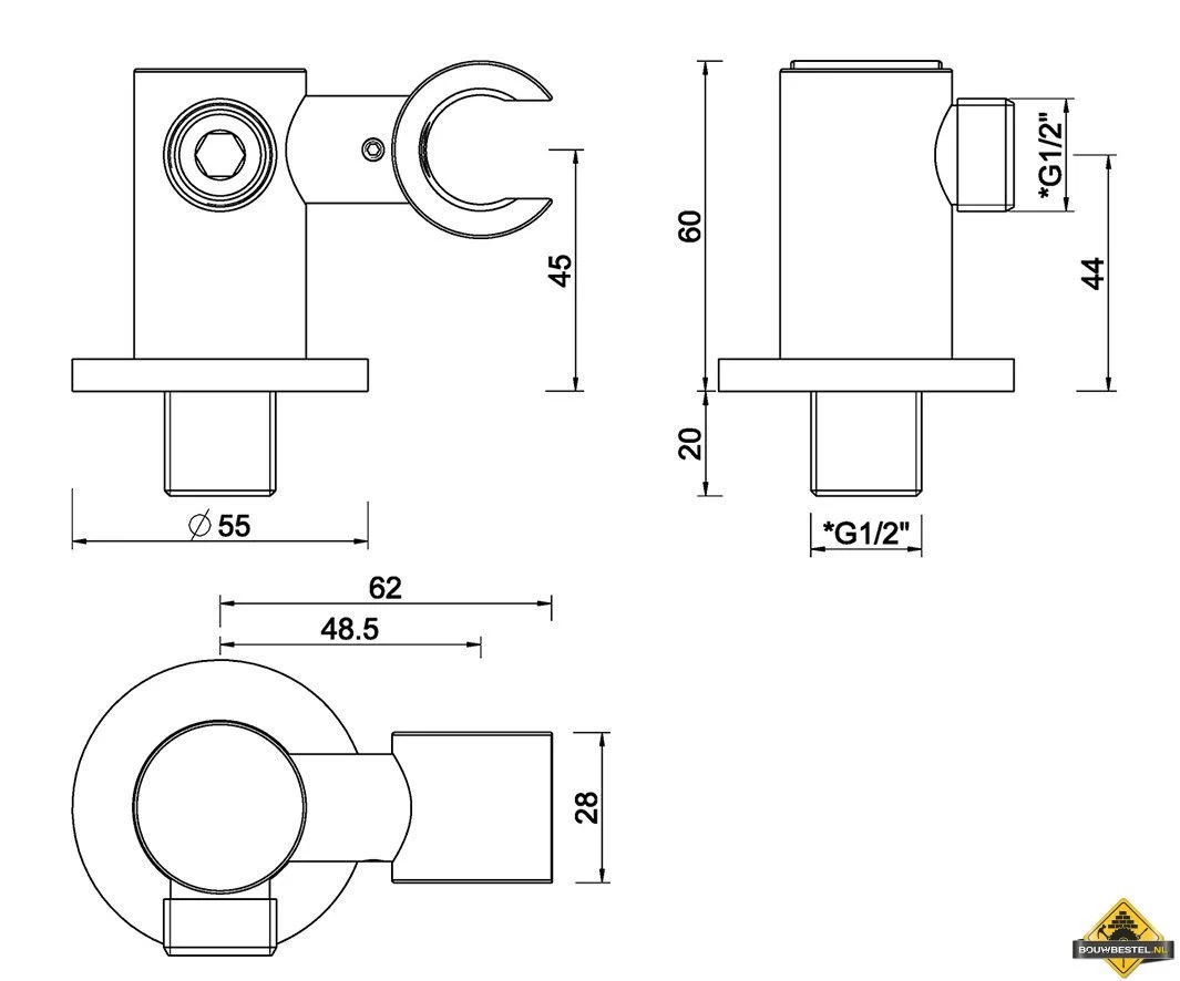 luxe doucheaansluiting+kantelb.opsteek 1/2” Gunmetal.