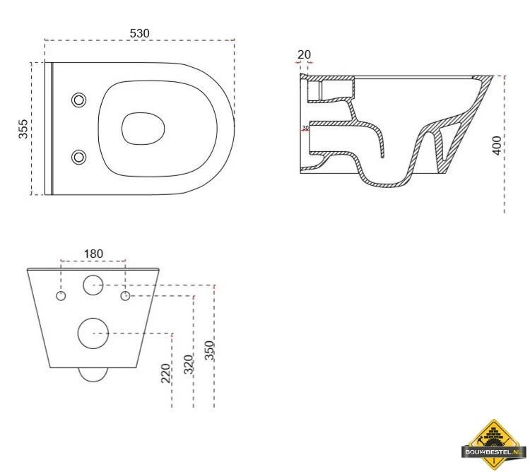 A-merk sanitair, zoals een Luxe rimless wandcloset 53, nu bij Bouwbestel!