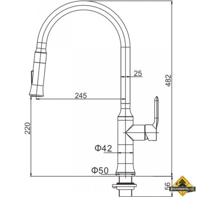 Opbouwhoogte onderkant kraanmondstuk: 220 mm