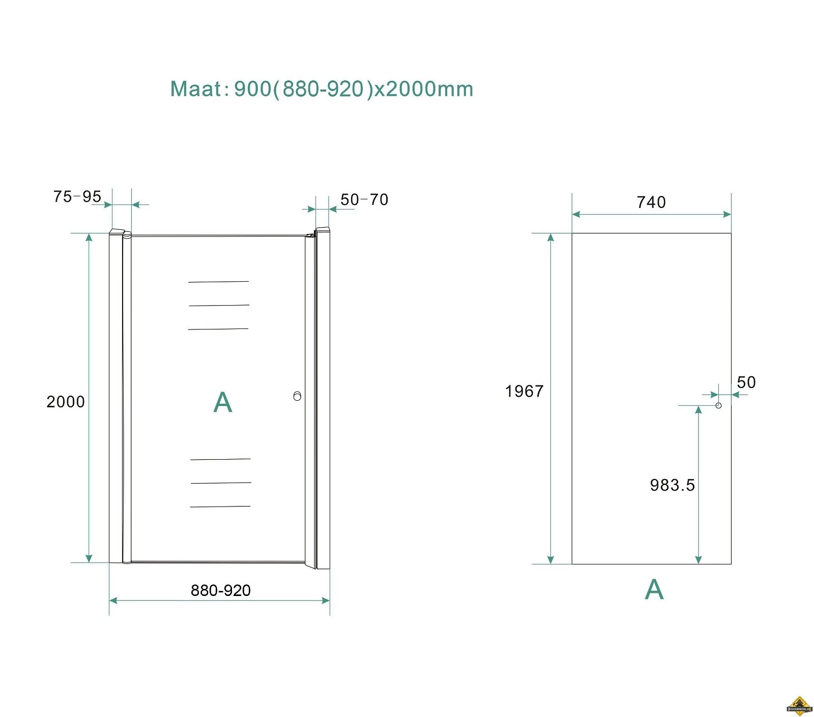 Inbouwbreedte deur voor montage in nis: 880I920 mm