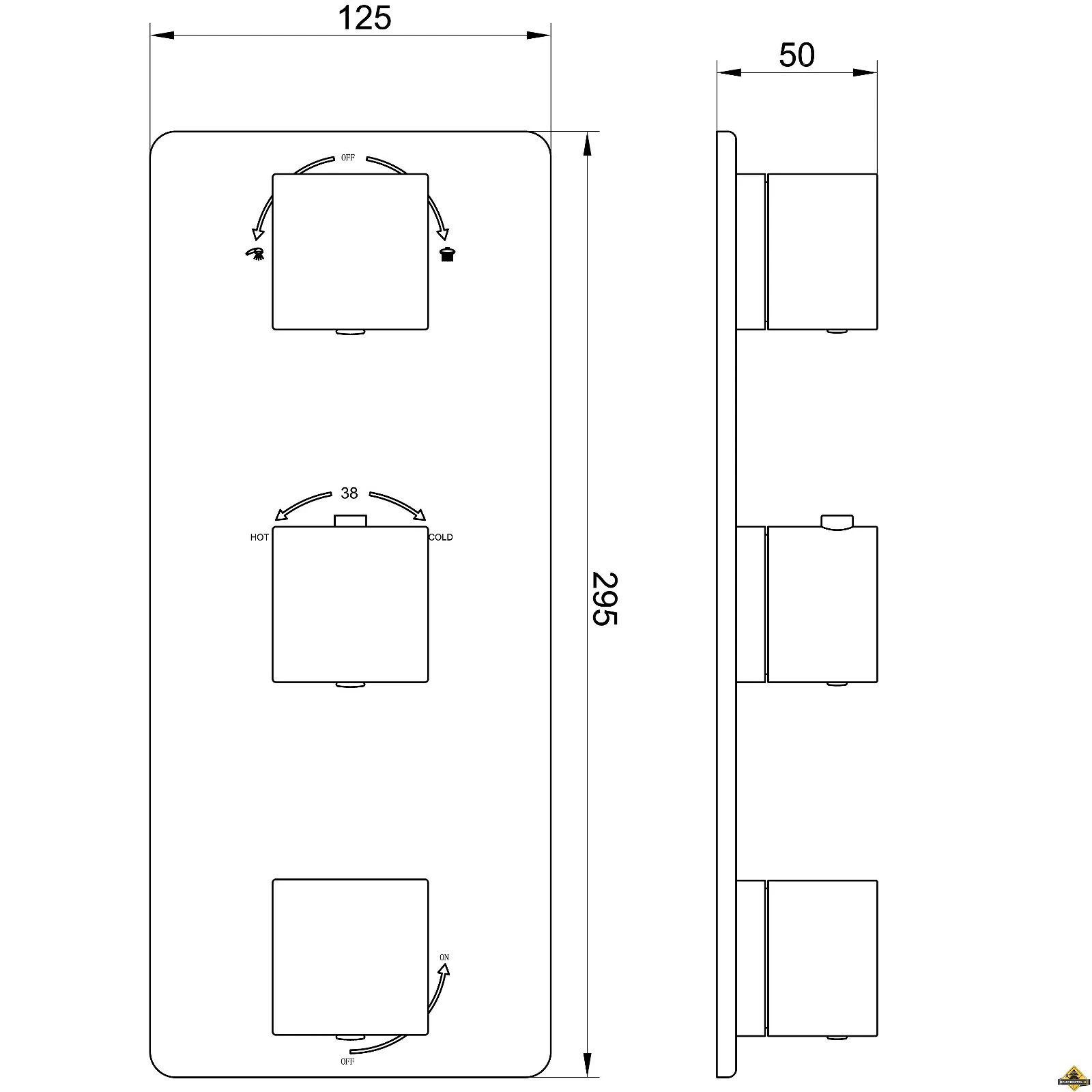 Voor een Rombo inbouw douchekraan afbouwset 3-weg heeft u een Bit inbouwdeel thermostaat 3-weg nodig (zie verwante producten).