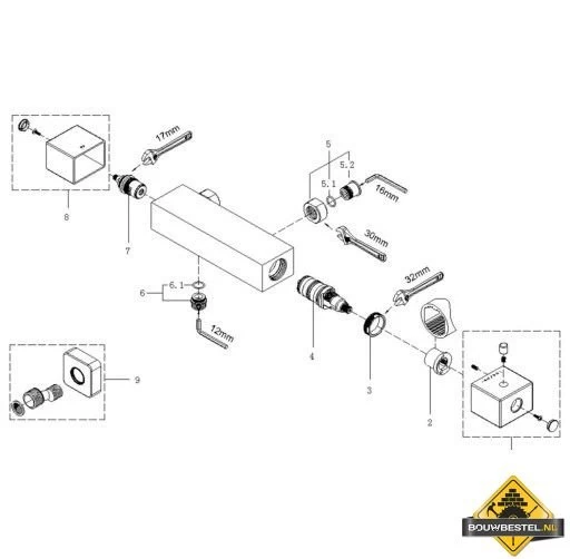 Met zijn vierkante vormen is de Rombo thermostatische douchemengkraan strak van vormgeving. Deze kraan is gemaakt van messing en heeft een chroom kleur. De Rombo douchemengkraan van Wiesbaden heeft een temperatuurblokkering bij 38°C. Om de temperatuur van het water verder te verhogen moet u de knop van de temperatuurblokkering indrukken. De hartafstand (de maat die gemeten wordt vanuit het midden van de aansluiting) is 15 cm.