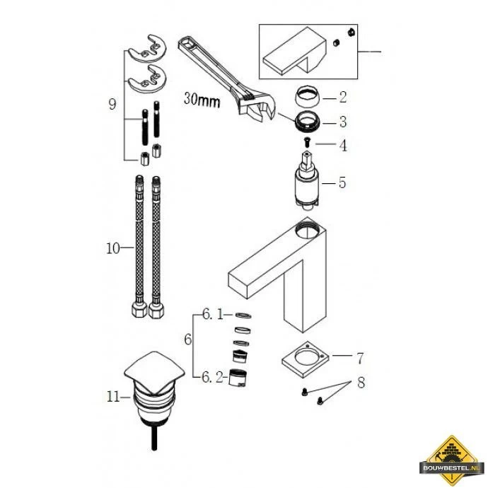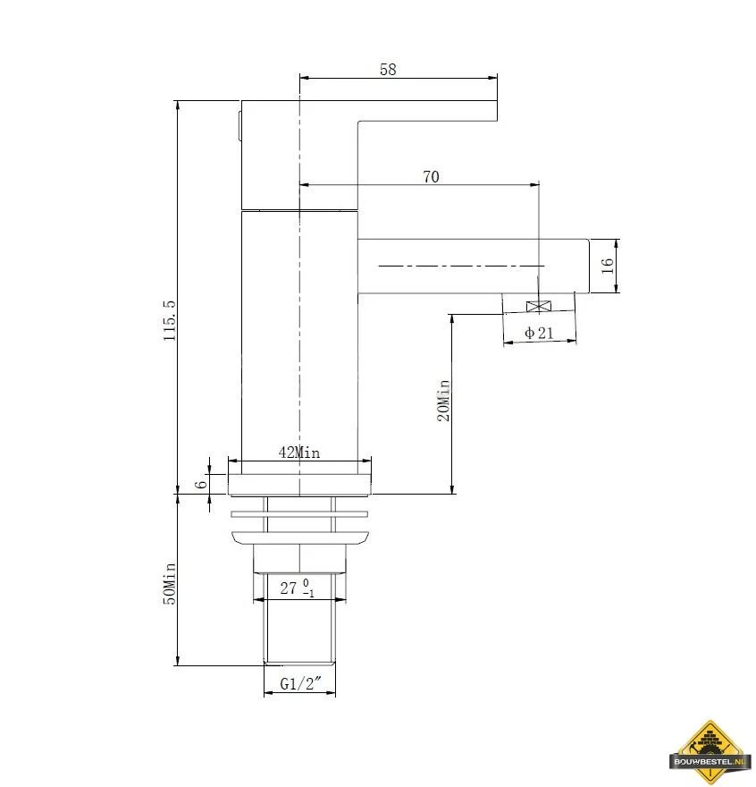 Opbouwhoogte onderkant kraanmondstuk: 53.5 mm