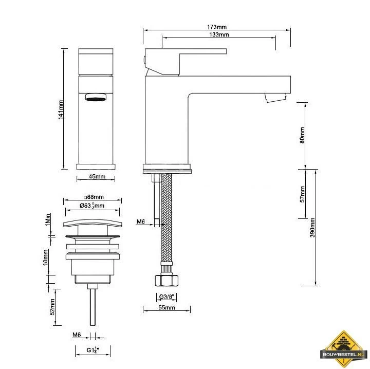Opbouwhoogte totaal: 114 mm