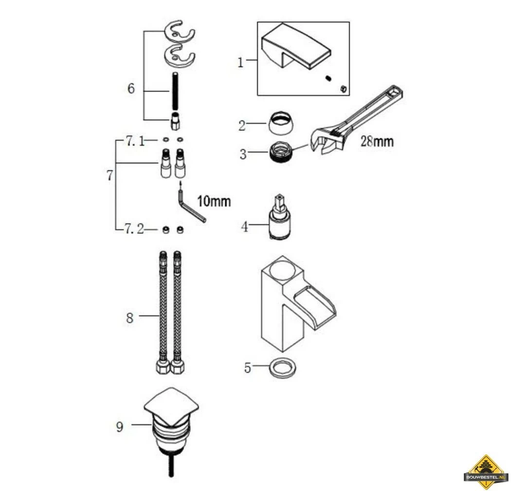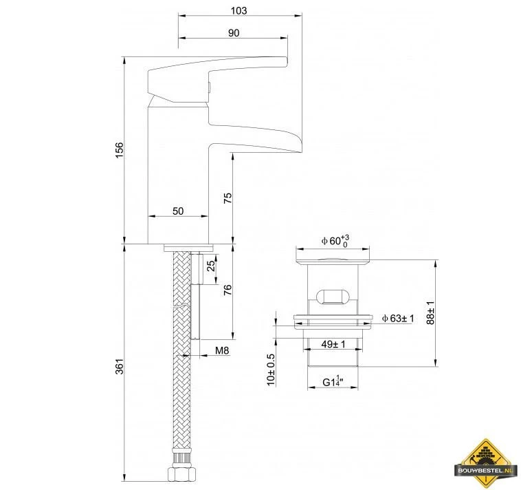 Opbouwhoogte onderkant kraanmondstuk: 75 mm