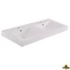 Dit topblad van Wiesbaden is niet voorzien van gaten voor een afvoer of kraan, deze dient u zelf aan te brengen. Hierdoor kunt u zelf bepalen waar en hoe u de eigen gekozen opzetwastafels wilt plaatsen. Dit topblad biedt ruimte voor twee opzetwastafels.