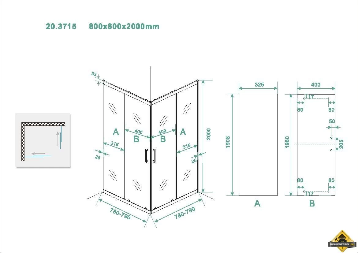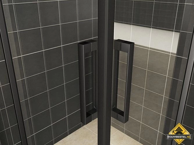 Skyline hoekinstap + 2 schuifdeuren 800x800x2000 mat zwart 8mm NANO.