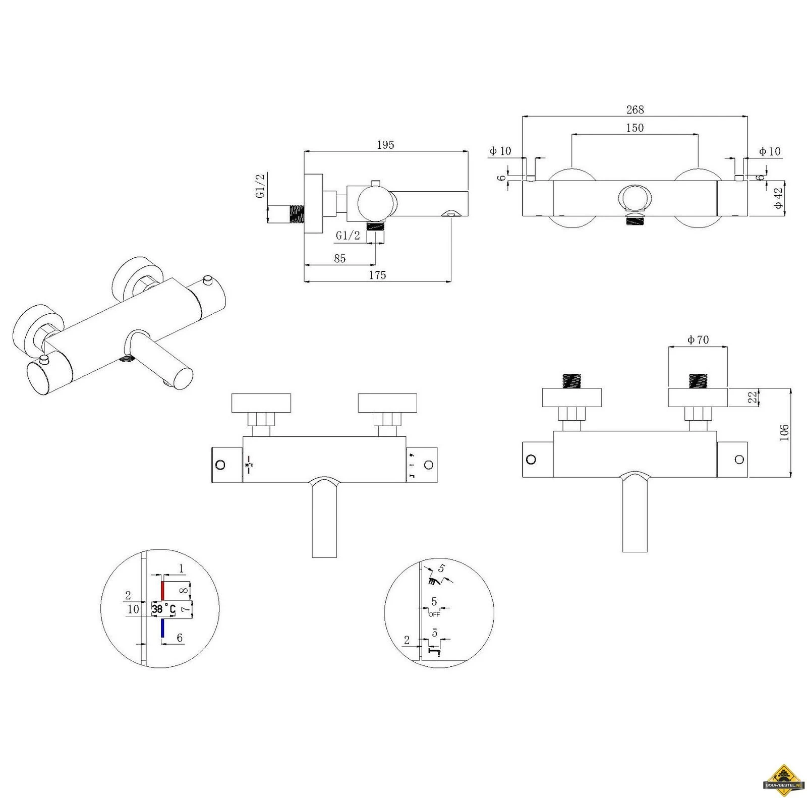 Style thermostatische badmengkraan cooltouch mat-zwart.