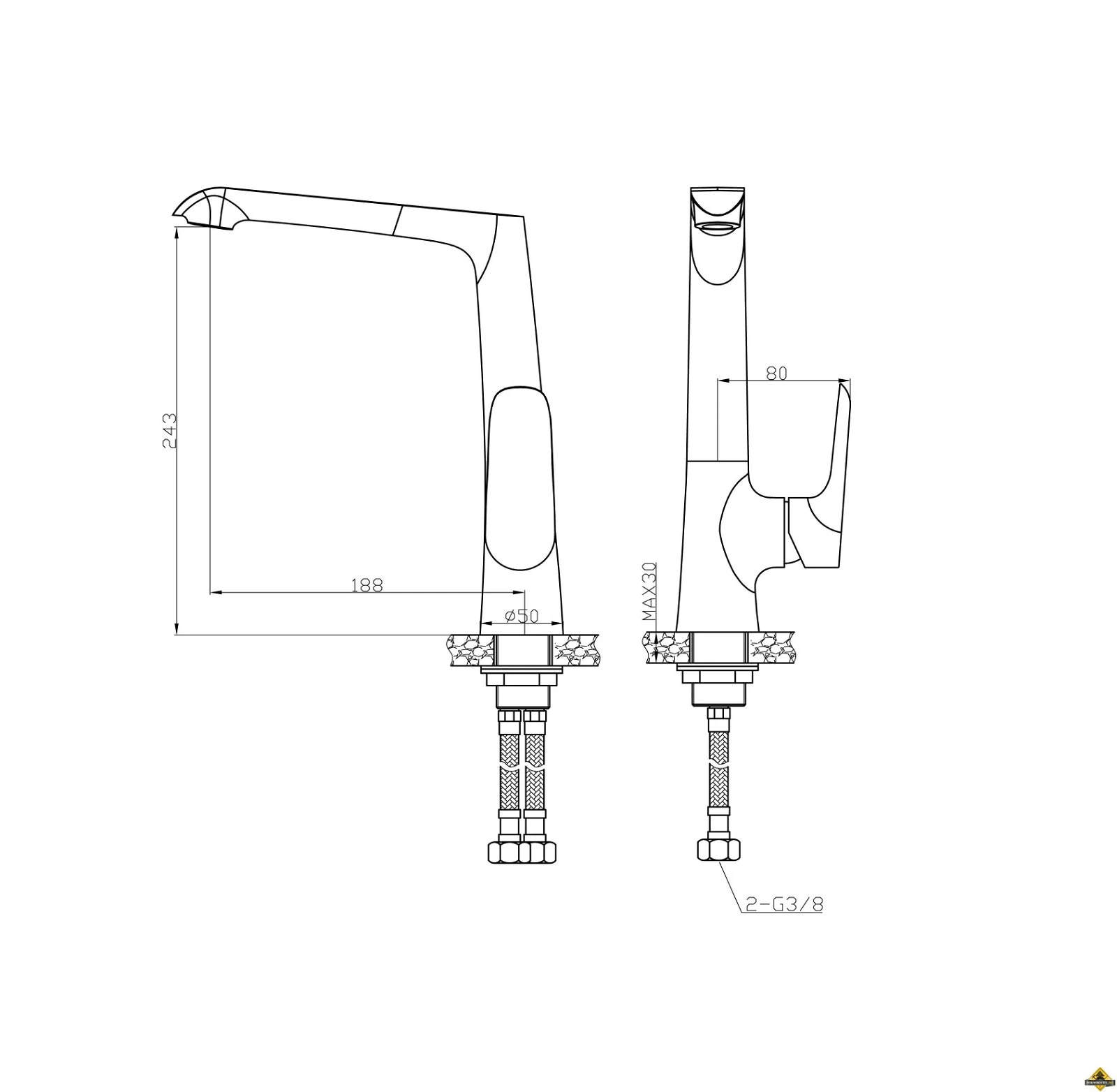 Opbouwhoogte onderkant kraanmondstuk: 243 mm