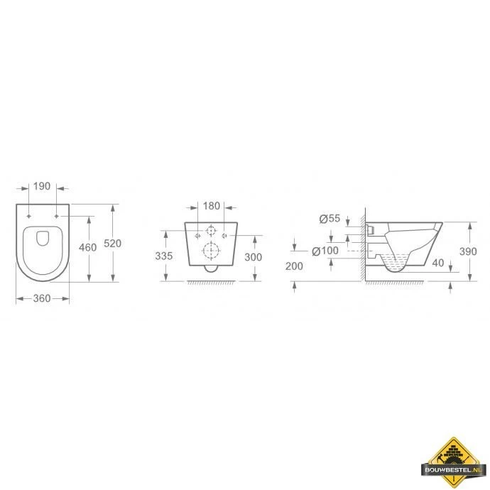- Hartmaat bevestiging wandcloset: 180 mm