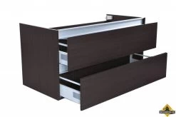 In deze houtnerf grijze Vision onderkast van Wiesbaden kunt u eventueel een wastafel met twee kraangaten plaatsen. De Vision onderkast is een lust voor het oog. Door de greeploze lades heeft hij een strak en tijdloos design. De twee lades zijn voorzien van een Soft-Close systeem. Dit zorgt ervoor dat de lades altijd rustig sluiten.