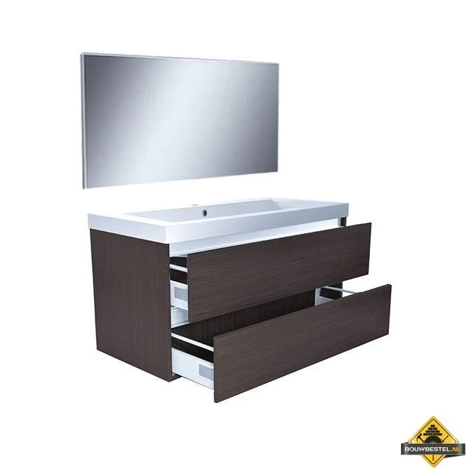 Deze meubelset is een moderne blikvanger in uw badkamer. De set wordt compleet geleverd met een onderkast, een keramische wastafel en een spiegel. Zo heeft u in één keer een bijna complete badkamer-inrichting.