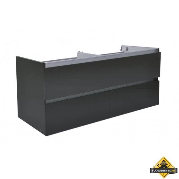 De keramische wastafel is voorzien van twee kraangaten met beide een overloop. De onderkast met ruime opbergruimte heeft vier lades die voorzien zijn van een Soft-Close systeem. Het Soft-Close systeem zorgt ervoor dat de lades altijd rustig sluiten.