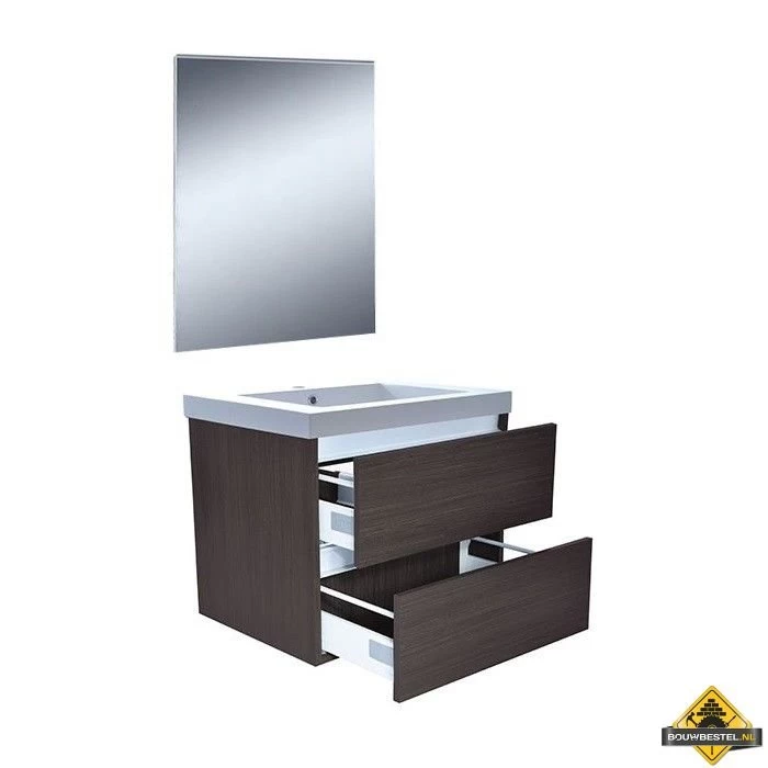 Deze meubelset is een moderne blikvanger in uw badkamer. De set wordt compleet geleverd met een onderkast, een keramische wastafel en een spiegel. Zo heeft u in één keer een bijna complete badkamer-inrichting.
