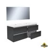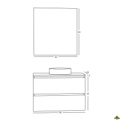 De onderkast is NATO gefineerd en 16mm dik.Voorzien van softclose geleiders voor de laden. De spiegel is voorzien van LED verlichting (zonder schakelaar) in een kroonlijst. Het blad: het blad is NATO gefineerd met een dikte van 2cm.